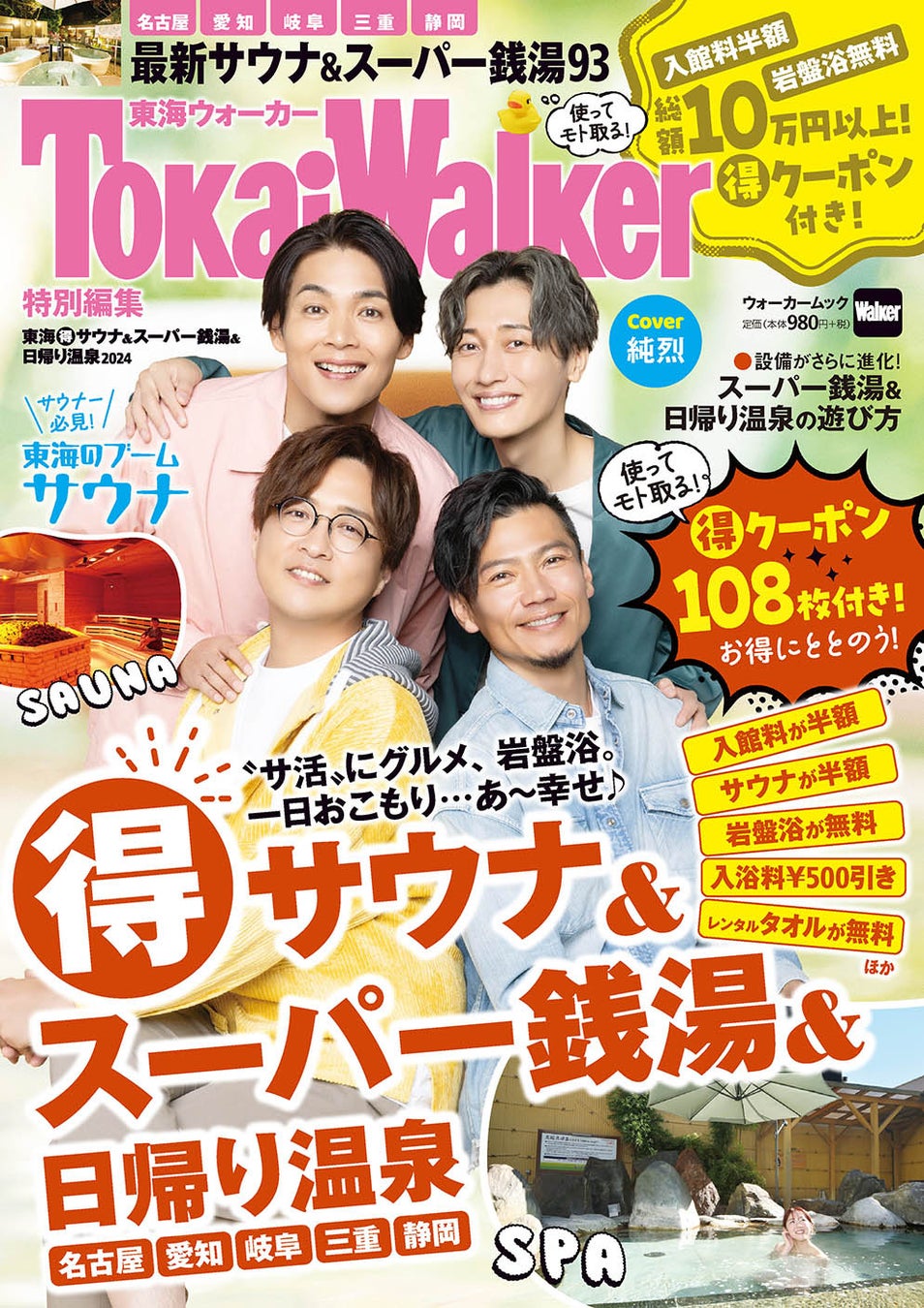 地元情報誌・東海ウォーカーが2019年に発行し大好評だった「東海エリアのスーパー銭湯 まるごと1冊クーポンBOOK」が4年ぶりの刊行です。今回はブームのサウナも加わってパワーアップ。さらにクーポンの有効期間はほぼ1年間。さっそく〝お得に〟癒されて&ととのって下さい!