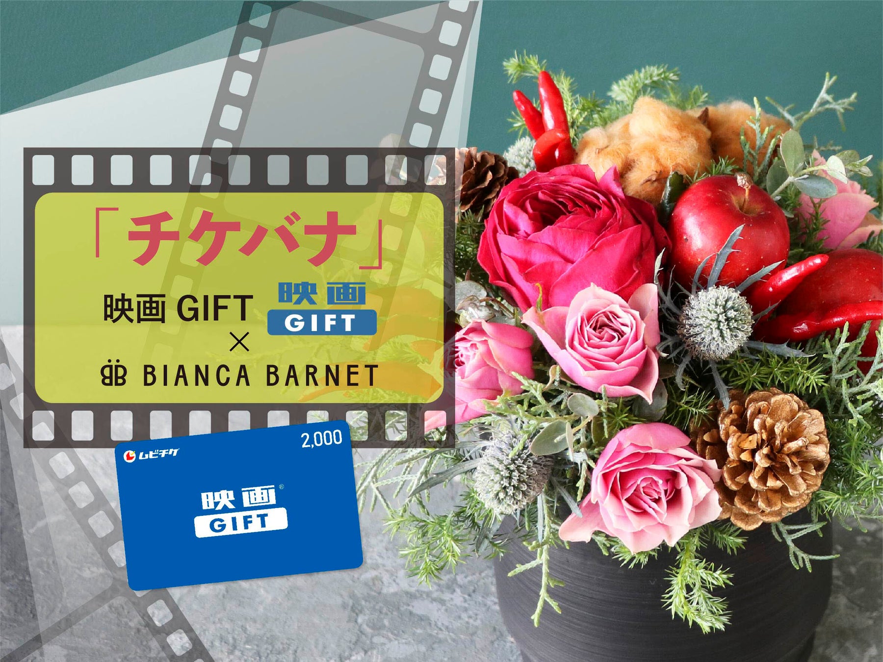 「映画GIFT」は全国の映画館でどんな作品でも観られる映画鑑賞デジタルギフトです。今回、「映画GIFT」と第一園芸のフラワーショップ「BIANCA BARNET(ビアンカバーネット)」のデザイナーアレンジメントがセットになった「チケバナ」のクリスマスギフトセットが、オンラインショップ限定で計4種類を販売いたします。
