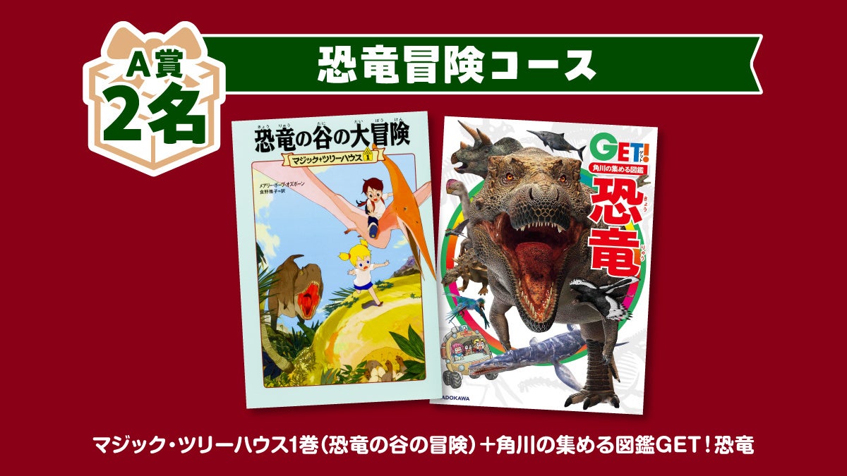 『マジック・ツリーハウス』クリスマスプレゼントキャンペーン <賞品> ■A賞:恐竜冒険コース 抽選で2名様 マジック・ツリーハウス1巻+角川の集める図鑑GET!恐竜 ■B賞:マジック・ツリーハウス詰め合わせコース 抽選で2名様 マジック・ツリーハウス1~3巻+冒険世界地図(A3サイズ)セット+特製下敷き ■C賞:みんなで遊ぼうコース 抽選で5名様 手品もできちゃう!マジック・ツリーハウス特製トランプ ■D賞:新刊買うぞコース 抽選で5名様 Amazonギフトカード(Eメールタイプ)2000円分 <応募しめ切り> 2023年12月22日(金)23:59まで <応募方法> ➀X(Twitter)のKADOKAWAさん@本の情報「@kadokawa_san」(https://twitter.com/kadokawa_san)をフォロー ➁応募要項を確認する ➂対象の投稿をリポスト(RT) <当選発表> 当選者へのみ2024年1月上旬頃までに、X(Twitter)のDM(ダイレクトメッセージ)にて「@kadokawa_san」よりお知らせします。 ※あらかじめDMを受け取れるよう設定してください。 ※ご当選の場合、DMに記載の日付までに賞品送付先を専用フォームにてご登録いただく必要があります。かならず期日までにDMをご確認ください。 ※新刊買うぞコース「Amazonギフトカード(Eメールタイプ)2000円分」については、DMの送信(2024年1月上旬頃予定)をもって代えさせていただきます。 ▼注意事項 ※あらかじめご了承のうえご応募ください ■応募には、X(Twitter)への登録(無料)が必要です。 ■当選はおひとりにつき1口までとなります。 ■以下の場合は、応募をお受けできません。 ・非公開アカウントの場合 ・懸賞応募用アカウントやボット(bot)アカウントから応募した場合 ・当選発表以前に、リポストを取り消した場合 ・当選発表以前に、対象アカウントのフォローを解除した場合 ・第三者の権利を侵害する内容および公序良俗に反する内容など、株式会社KADOKAWA(以下、弊社といいます)で不適切と判断した内容が含まれる場合 ■応募に際し発生する通信料などは、お客様のご負担となります。 ■賞品の発送は2024年1月下旬を予定しています。なお、発送先は日本国内に限ります。 ■当選賞品を譲渡(転売、オークション出品含む)しないことが応募・当選の条件です。譲渡が明らかになった場合、当選は取り消され賞品をお返しいただくことがあります。 ■当キャンペーンは、弊社が主催しています。X(Twitter)およびX Corp.とは関係ありません。 ■X(Twitter)および関連ツールの動作等の不測の障害により、当キャンペーンを予告なく変更・中止させていただく場合があります。 ■応募に際しご提供いただいた個人情報は、弊社のプライバシーポリシー(https://group.kadokawa.co.jp/privacy_policy/main.html)の定めるところにより取り扱わせていただきます。 <お問い合わせ> KADOKAWA カスタマーサポート https://wwws.kadokawa.co.jp/support/contact/ ※かならず「マジックツリーハウスクリスマスキャンペーンについて」とご明記ください。 ※サポートは日本国内に限ります。 |