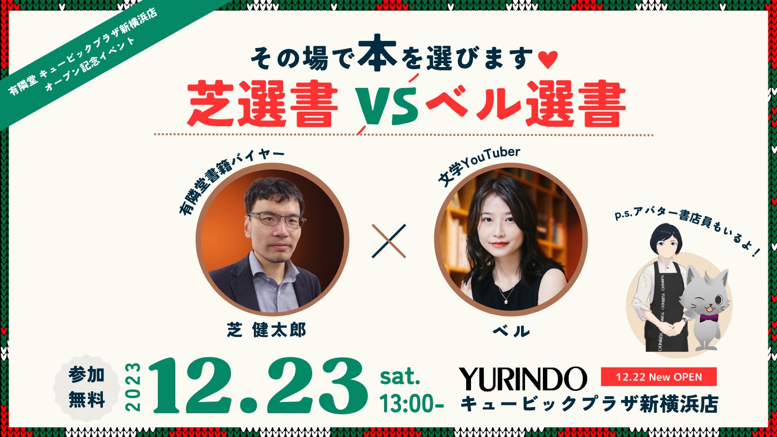株式会社有隣堂(本社:神奈川県横浜市、代表取締役社長:松信健太郎)、株式会社KADOKAWA(本社:東京都千代田区、取締役 代表執行役社長 CEO:夏野剛、以下KADOKAWA)、およびAVITA株式会社(本社:東京都品川区、代表取締役CEO:石黒浩、以下「AVITA」)は、2023年12月23日(土)、有隣堂の新店舗・キュービックプラザ新横浜店のオープンを記念した選書イベント『その場で本を選びます(ハート) 芝選書VS.ベル選書 p.s.アバター書店員もいるよ』を開催いたします。