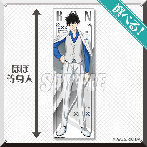商品は、主人公・鴨乃橋ロンと一色都々丸のスタイリッシュなスーツ姿の描き下ろしイラストなどを使用したオリジナルグッズです。美麗なイラストを大きく楽しめて絵柄を選べるほぼ等身大サイズの布ポスターや、キャラクターが可愛く擬猫化した「にゃんますこっと」他、ファン必携のアイテムが盛りだくさんです!! また期間中に【10 連セット】ご購入で、「ブロマイド」をプレゼントするキャンペーンも実施いたします!! この機会をお見逃しなく!