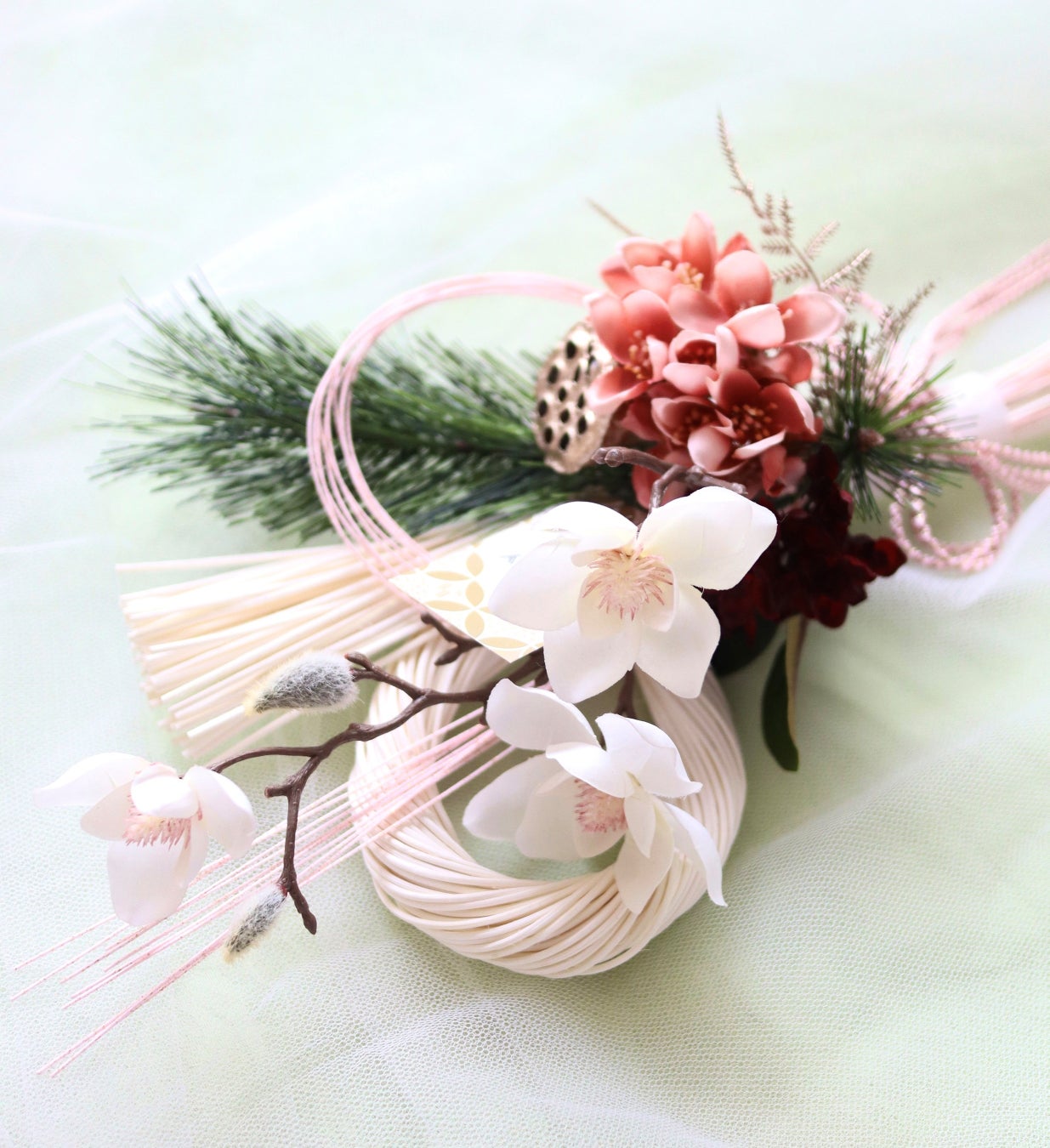 そして、厳選したアーティフィシャルフラワーで作った「お正月飾り」です。