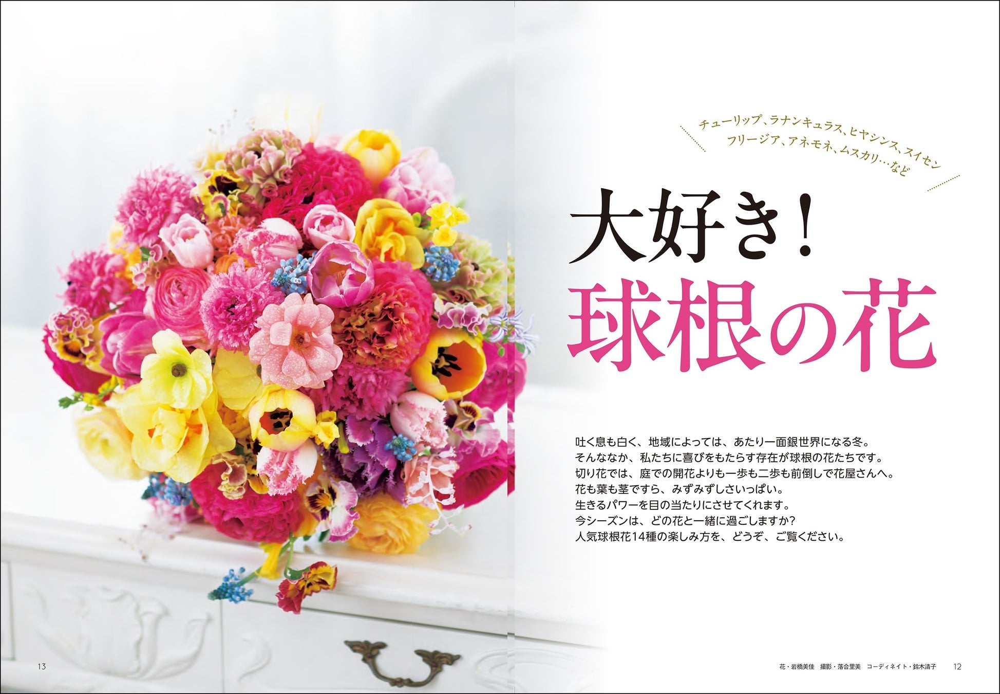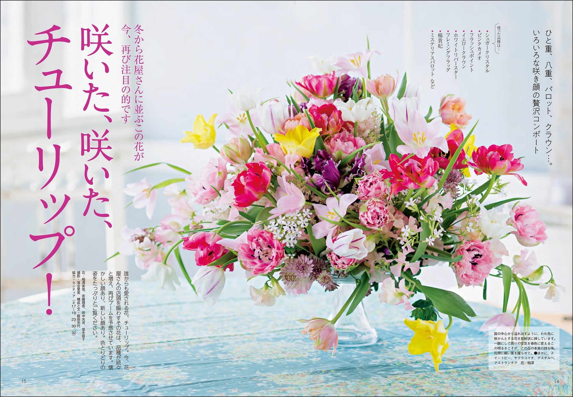 いまの季節、花屋さんを覗くと、花の香りや躍動感に満ち溢れています。特集するのは、チューリップやラナンキュラス、アネモネなどの球根から生まれた花々。寒いなか、明るく、暖かな春を連想させ、エネルギーをチャージしてくれます。