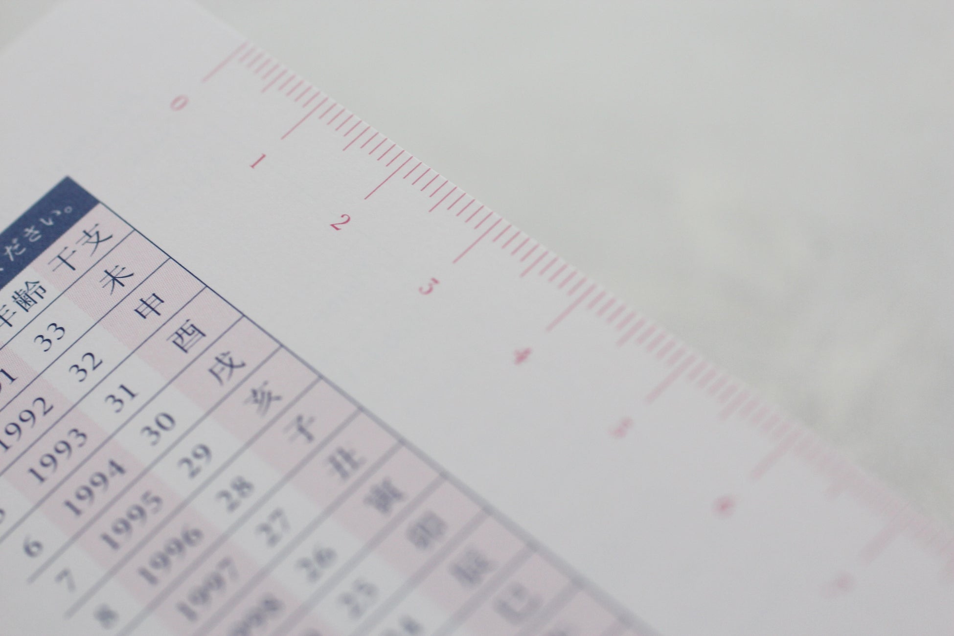 年齢早見表のそばにつけた目盛りは、定規! 花屋さんで見かけた花や花器など、サイズをすぐに測れて、重宝します。