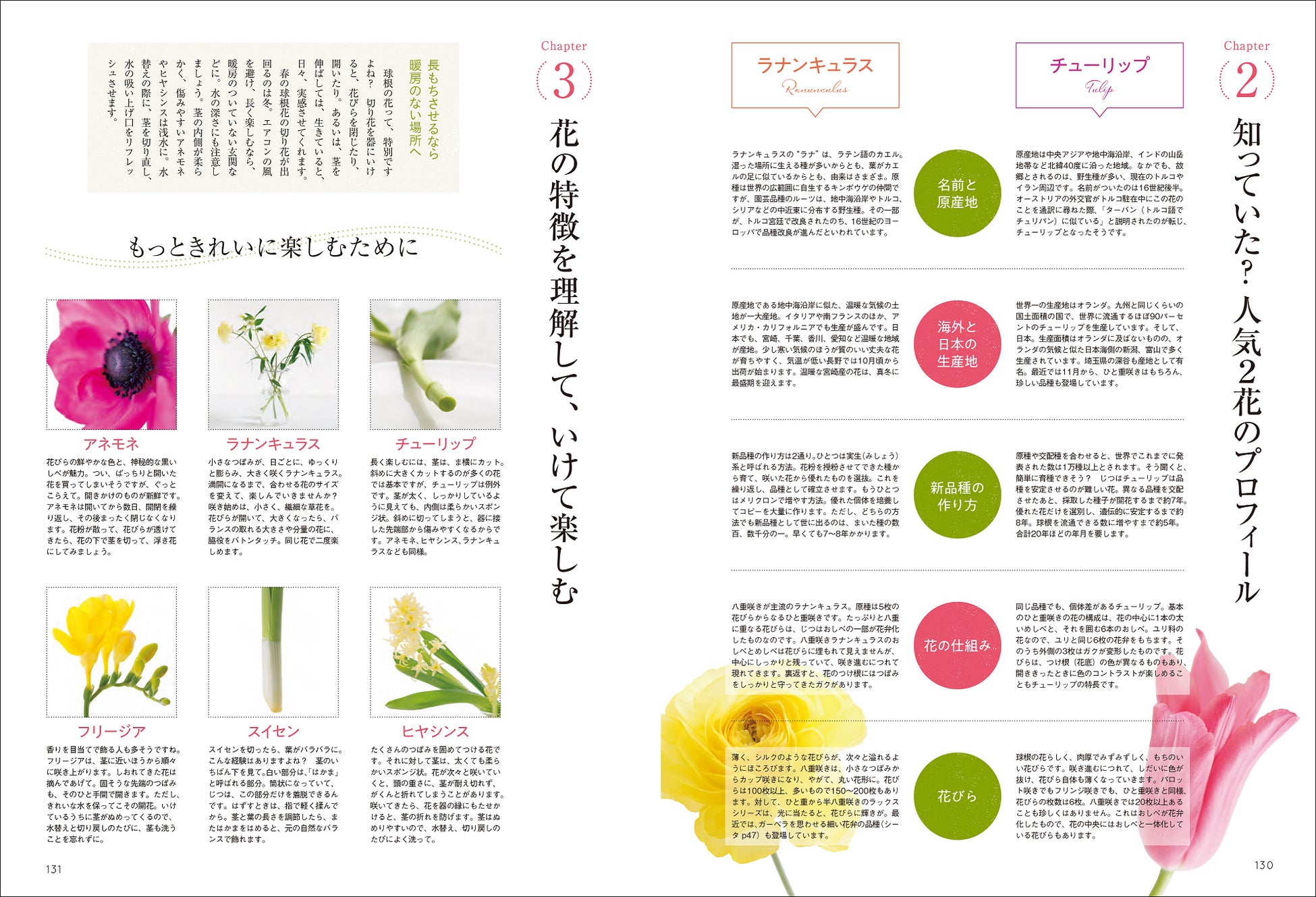 これからの季節、ギフトにもおすすめの華やかなアレンジから、数本で素敵に飾れる「おうちアレンジ」用のミニアレンジも収録。花の名前の由来や、意外な性質など、明日、誰かに話したくなる読み物もつけました。