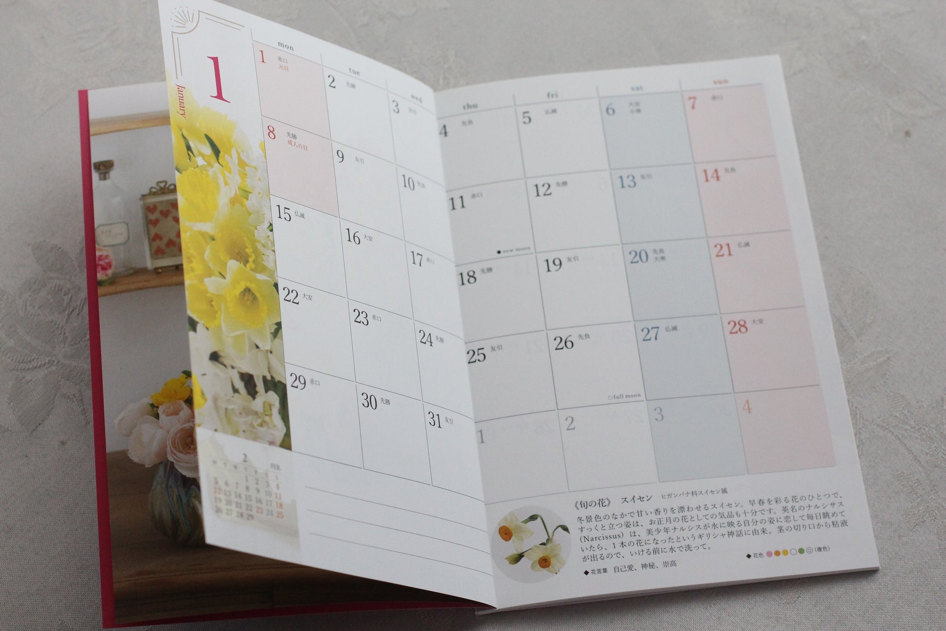 そして、特別付録は1月始まりの「花の手帳」。毎日のスケジュールを書き込めるのはもちろん、お役立ちは人気花62種の出回りカレンダー。花屋さんに並ぶ時期がひと目でわかります。詳しくは、この記事の後半で!
