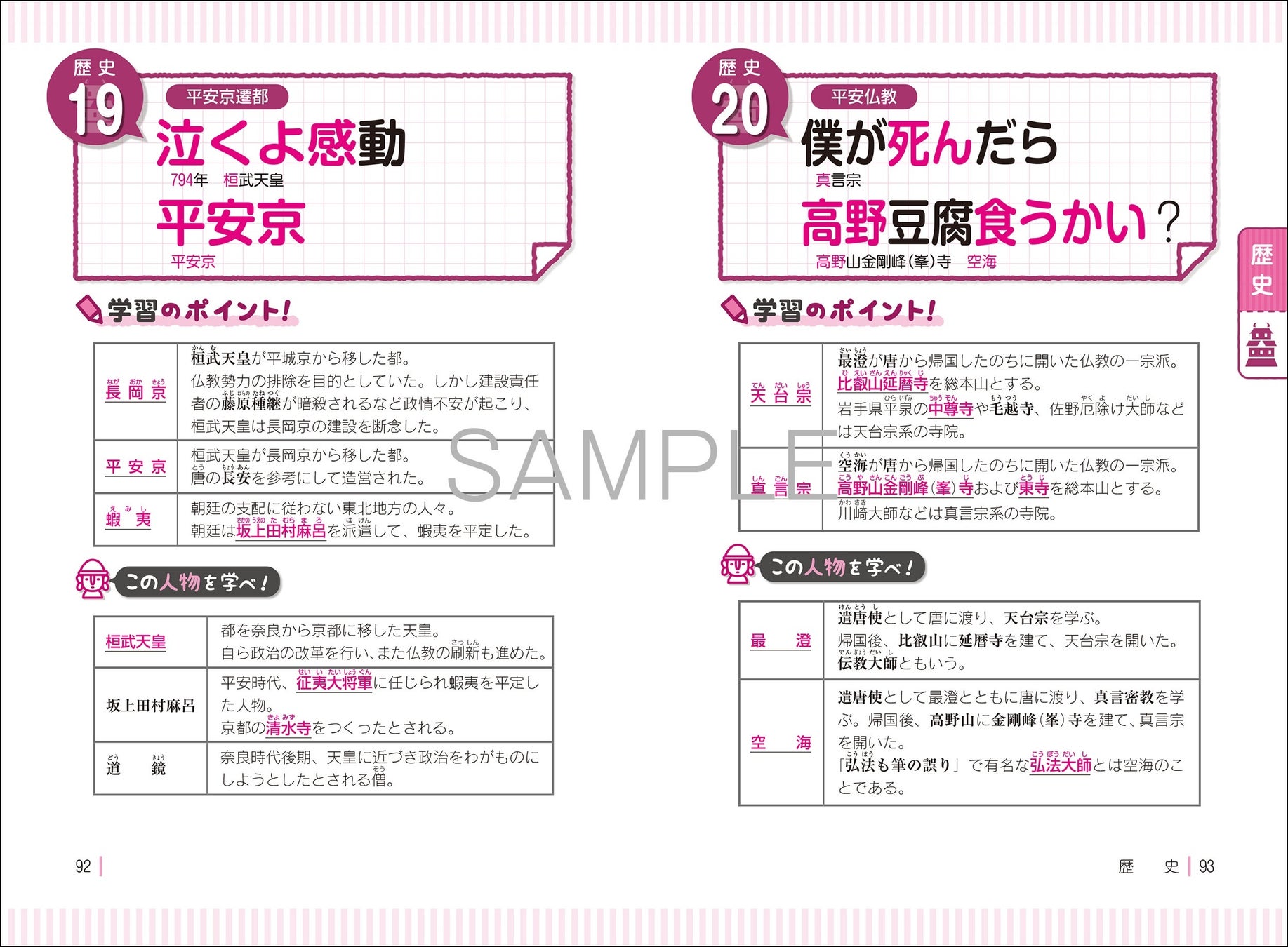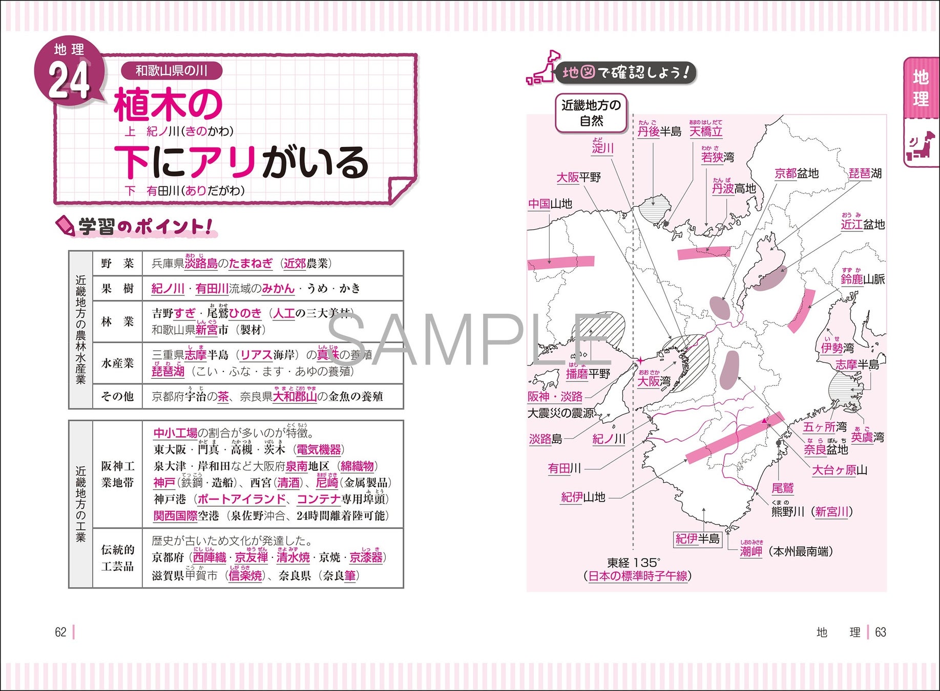 本書では、最新入試傾向をもとに学習すべきテーマを厳選。理科は計100テーマ、社会は計140テーマの学習ポイントや関連事項をコンパクトにまとめました。「最低限コレだけは」という内容を厳選し、図や表、イラストを使ってわかりやすくまとめています。もちろん、よく出る理科の「計算問題」や社会の「記述問題」も掲載しています。