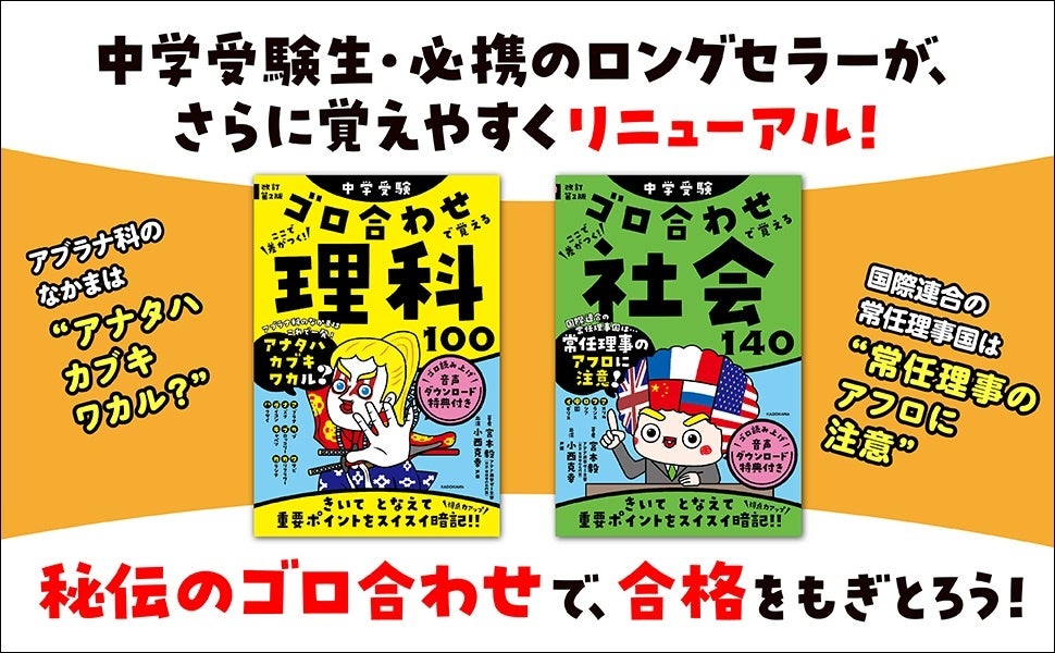 「中学受験 ゴロ合わせで覚える」シリーズは、東京・吉祥寺の名門塾「アテナ進学ゼミ」主宰の著者・宮本毅氏による、ロングセラーの学習参考書です。長年の実績に裏付けされた「秘伝のゴロ合わせ」が、今回さらに覚えやすくなってパワーアップしました。