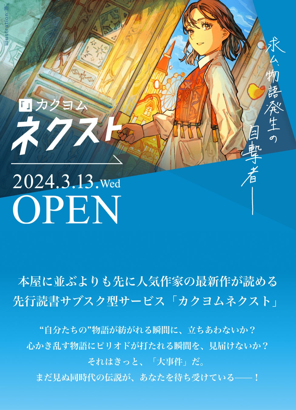 株式会社KADOKAWA(本社:東京都千代田区、取締役 代表執行役社長 CEO:夏野剛、以下KADOKAWA)は、株式会社はてな(本社所在地:京都市中京区、代表取締役社長:栗栖義臣)と共同で開発したWeb小説サイト「カクヨム」において、新たに有料会員向けの読書サブスクリプションサービス「カクヨムネクスト」を2024年3月