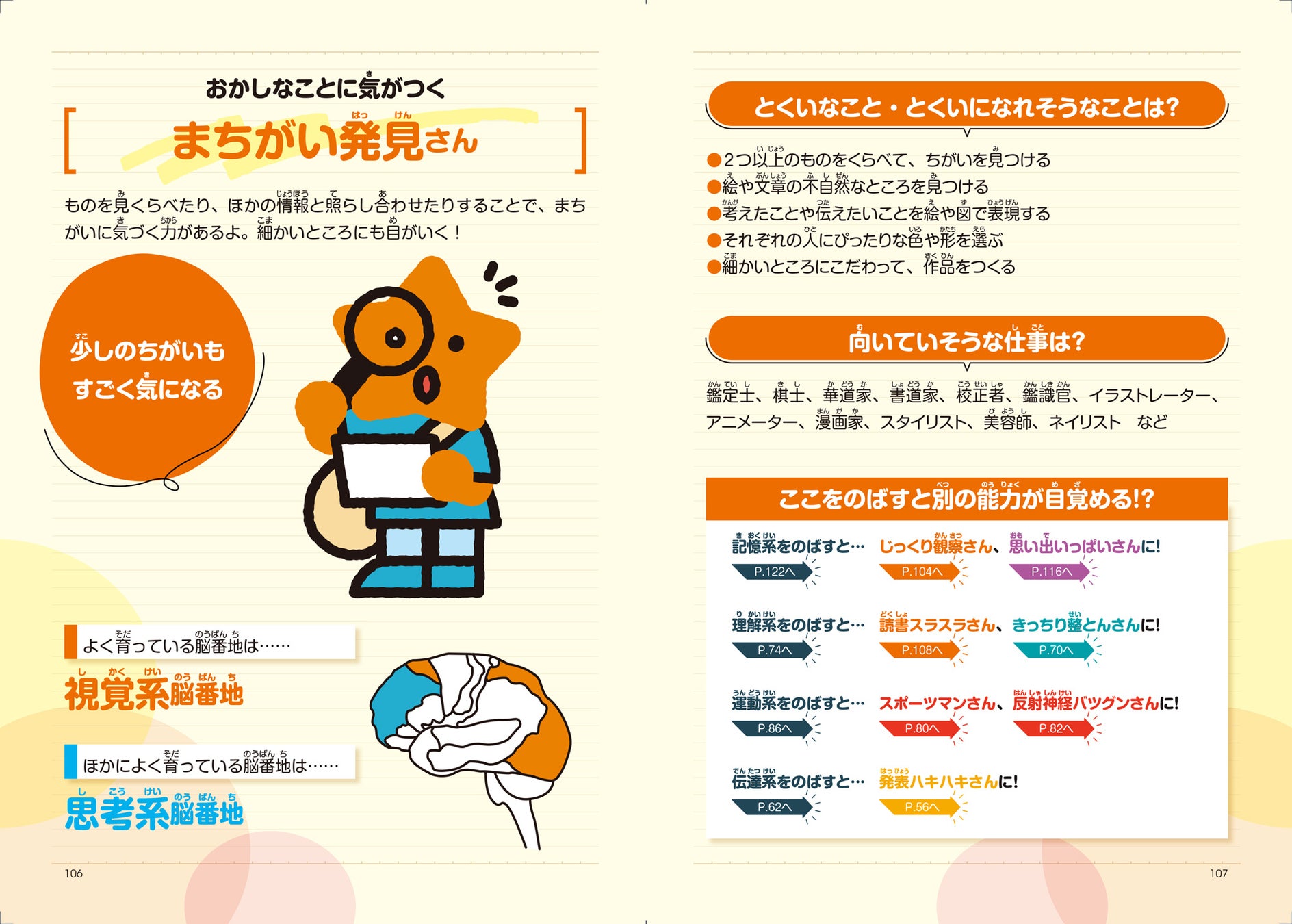 「スゴい脳を見つけよう!しんだん」で、どの脳番地が育っているかわかるので、自分の脳にどんな長所があるのか知ろう。