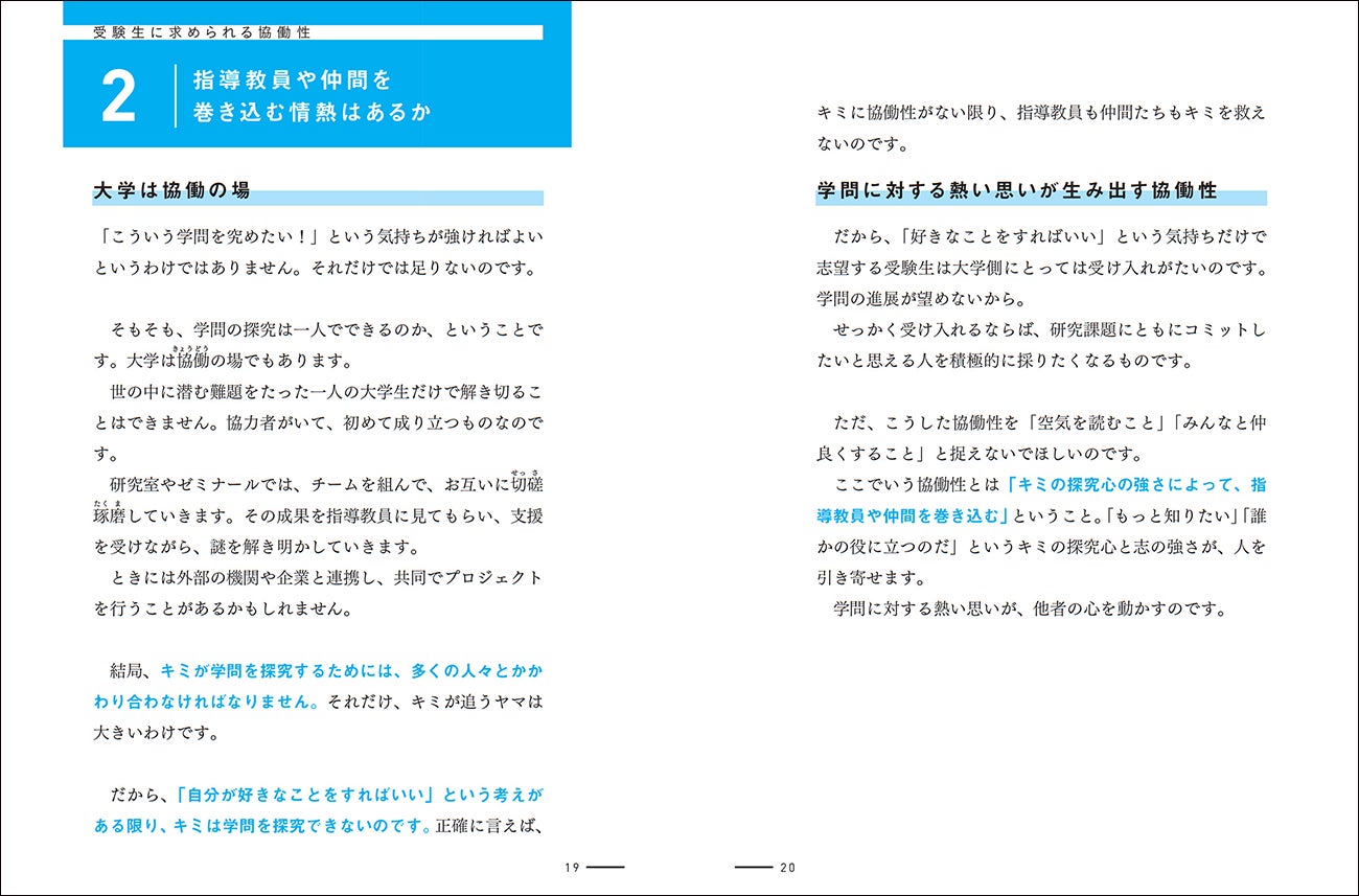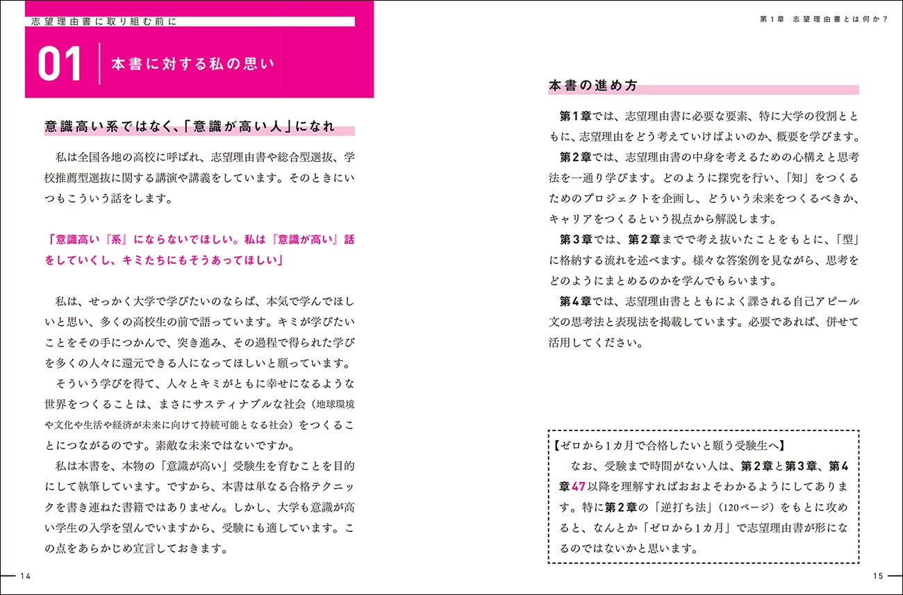 書き方や答え方も重要ですが、それ以上に「考え方」が重要です。本書は「大学は受験生に何を求めているのか」を考え、自分が大学で学びたい学問について向き合う内容となっています。