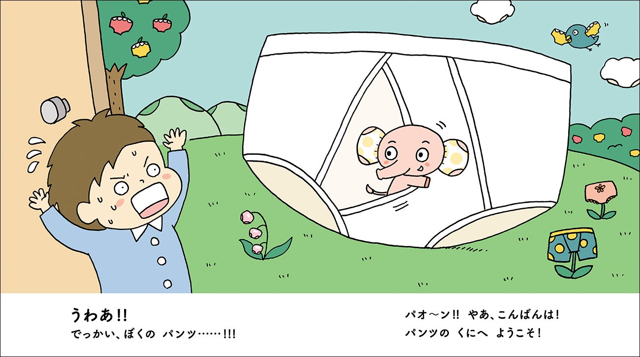 ↑絵本ではパンツの中のぞうちん(=ぞうさん+ぼくのおちんちん)が、「正しいおしっこの仕方」など、おちんちんにまつわるあれこれを教えてくれる。